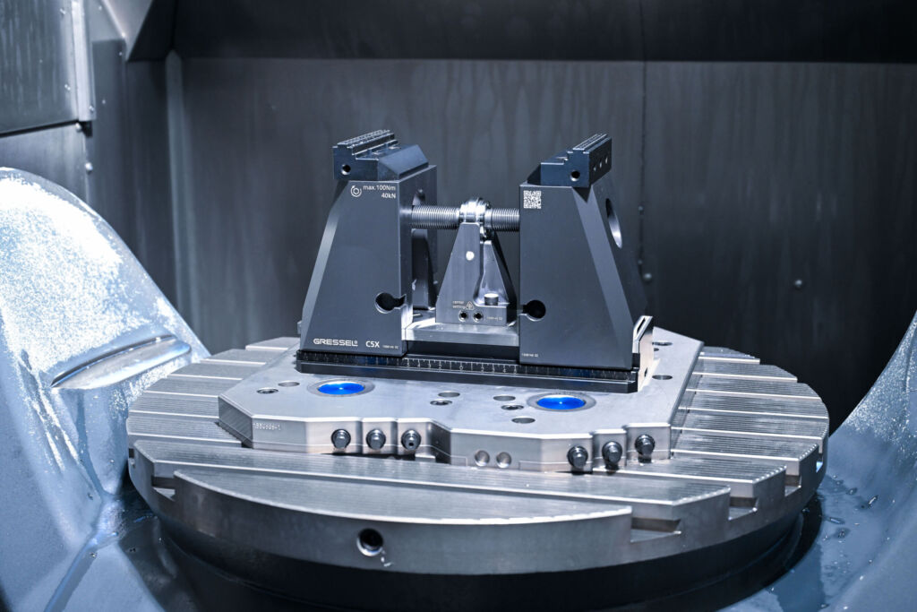 Mit dem neuen zentrischen 5-Achs-Werkstückspannsystem C5X kommt Gressel zur EMO 2025 nach Hannover (Halle 3, Stand I41). Neben dem sicheren Fixieren von Werkstücken haben 5-Achs-Spanner vor allem ein hohes Maß an Zugänglichkeit zu gewährleisten. Der C5X erfüllt diese Grundanforderung mit hohen Trägerbacken, die durch das verwendete Backenprogramm des C2.0-Zentrischspanners von Gressel hochgradig flexibilisiert werden. Die Wendeplatten Grip sind somit ebenso verfügbar wie Adapter- und Pendelplatten oder wendbare Prismabacken.