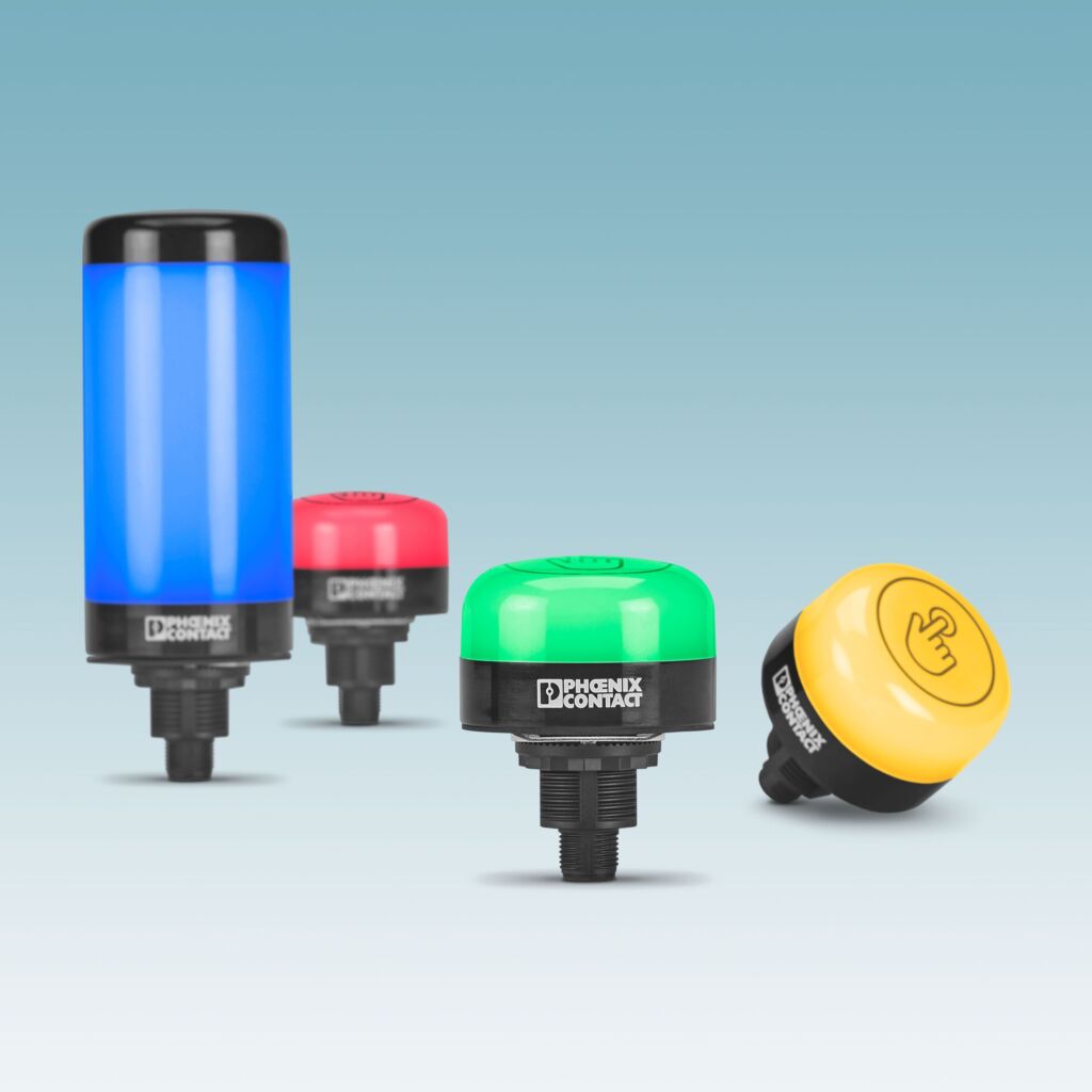 Mit der LED-Signalleuchtenserie PSD-SL bietet Phoenix Contact eine kompakte Lösung für die anwendungsnahe Signalisierung direkt an Maschinenfunktionen. Die Leuchten sind vielseitig einsetzbar, robust gebaut und für den Innen- wie Außeneinsatz geeignet. Sie sind in den zwei Bauformen Point und Tower erhältlich und bieten je nach Ausführung drei oder sieben wählbare Farben.