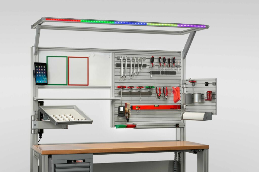 Der LED-Streifen ist in wenigen Minuten montiert und kann einfach mit dem LED-Mantelprofil 8 entlang der Nut befestigt werden. Mit dem eigens von Item entwickelten IO-Link Controller ist das System einfach in die Produktionssteuerung integrierbar. Über IO-Link ist eine individuelle Parametrierung möglich. Zur Auswahl stehen die Betriebsarten Segmentanzeige, Countdown, Füllstand und Markierleuchte. Mögliche Einsatzbereiche sind Maschinenkabinen, Arbeitsplätze oder Kommissionierstationen. Zusätzlich bieten die Nordrhein-Westfalen direkt einbaufertige Multi-Segment RGB-Leuchten in drei Längen an, die über IO-Link in Farbe und Helligkeit regelbar sind.