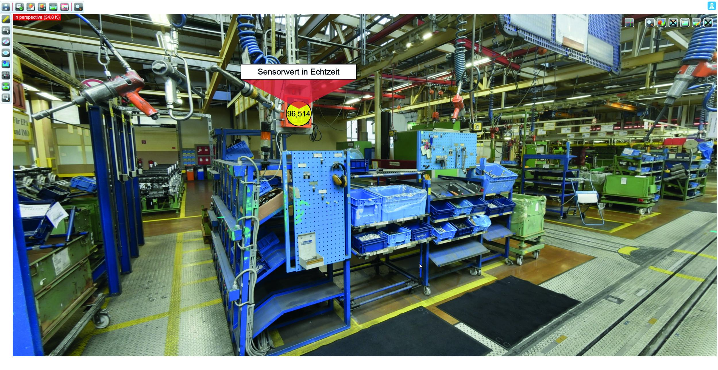 Sensorwerte werden in Echtzeit an den fotorelistischen Digital Twin übermittelt und dort angezeigt.