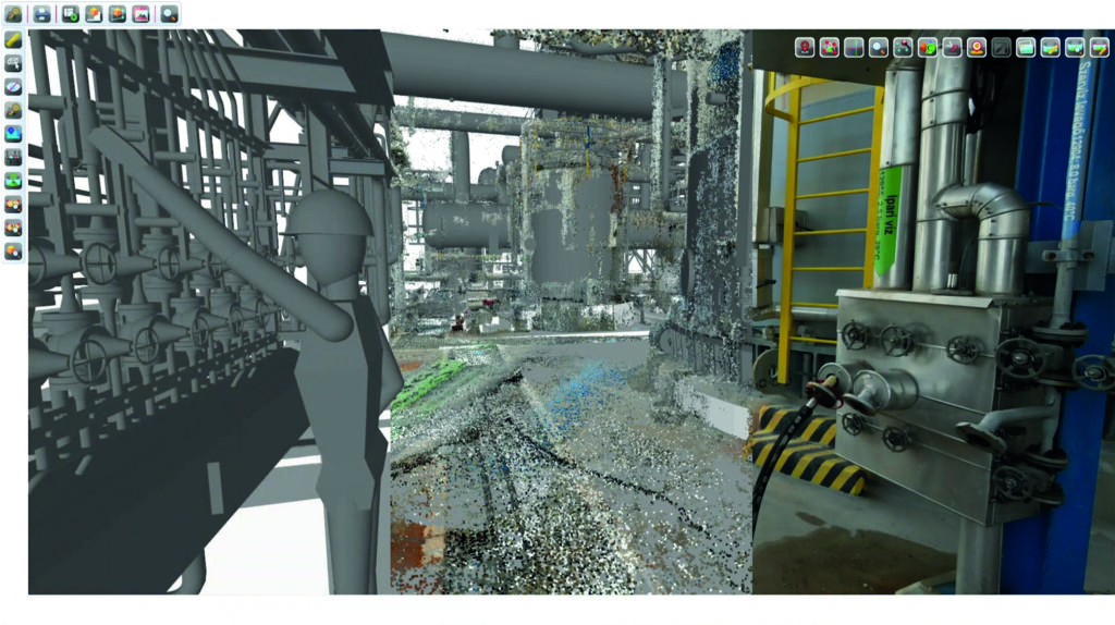 Per Mausklick lässt sich so z.B. von einem Maschinenmodell direkt zur Wartungshistorie oder vom Gebäudegrundriss zum dazugehörigen Mietvertrag springen. Im Ergebnis entsteht ein vollständiges digitales 3D-Abbild der gesamten Fabrik- oder Gebäudestruktur.