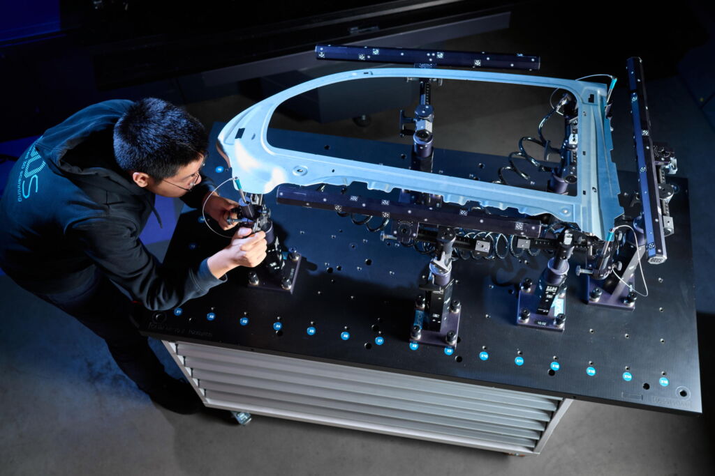 Die flexible Spannvorrichtung Quick Arm Designer (QuAD) von a3DS ist zur Nutzung von Virtual Clamping optimiert. Eine intuitive Software unterstützt bei der Konfiguration. QuAD eignet sich für eine unbegrenzte Anzahl unterschiedlicher Bauteile und kann herkömmliche Vorrichtungen ersetzen. Insbesondere für nicht-eigenstabile Bauteile sind die Vorteile des Virtual Clampings nutzbar.