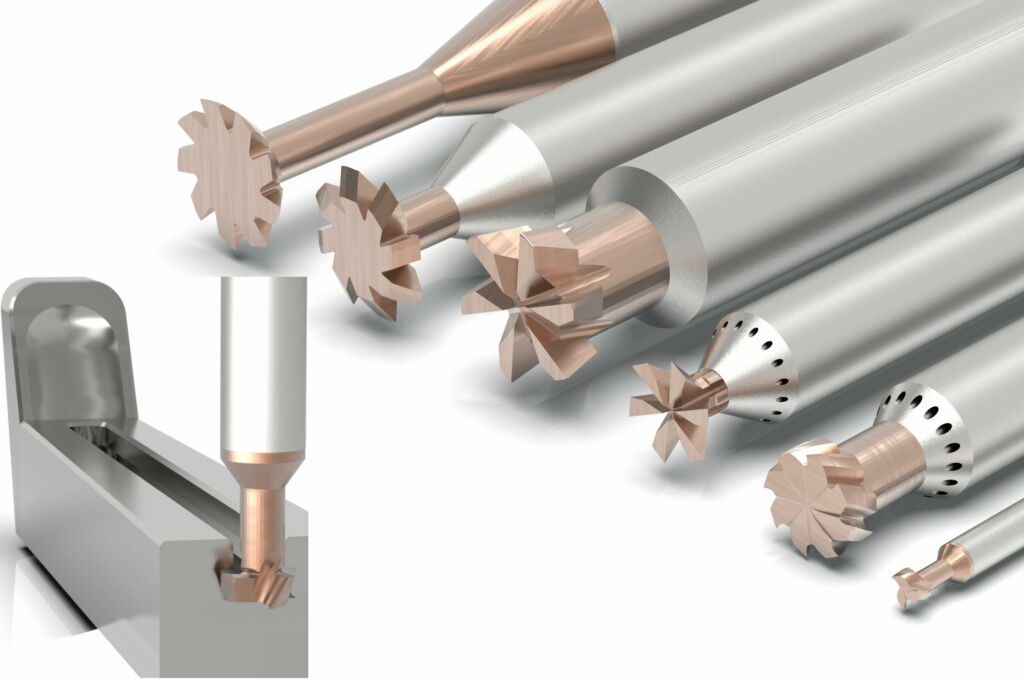 In ausgewählten Branchen, etwa in der Medizintechnik oder Luft- und Raumfahrt, sind wiederholt kleine T-Nuten in Bauteilen aus schwierig zu bearbeitenden Werkstoffen zu fertigen. Geeignete Sonderwerkzeuge zu schleifen und zu beschichten dauert lange und verursacht hohe Kosten. HB Microtec hat hierfür semi-standardisierte T-Nutfräser entwickelt. Die Reihe umfasst Vollhartmetall-Fräser mit 0,8 bis 40mm Durchmesser für 0,4 bis 25mm breite T-Nuten. Als Standard stehen die Nutfräser in blanken und beschichteten Varianten für rechteckige Nuten ab Lager zur Verfügung.