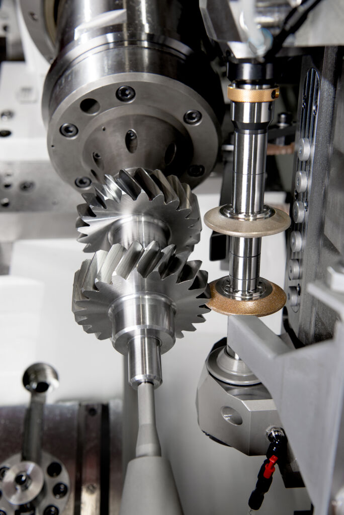 Auf VX-Maschinen können ein oder zwei auswechselbare Schleifspindeln eingesetzt und bis zu sechs Schleifwerkzeuge gleichzeitig genutzt werden. So ist es zum Beispiel möglich, mehrere Verzahnungen in einer einzigen Aufspannung zu bearbeiten. Darüber hinaus lassen sich auf den selben Schnittstellen Zusatzschleifköpfe für Schleifarme zum Bearbeiten von Innenverzahnungen anbringen. Dabei können sowohl abrichtbare als auch abrichtfreie CBN-Schrupp- und Schlichtwerkzeuge von Kapp Niles genutzt werden. Mit dem optionalen Nullpunktspannsystem lassen sich die Rüstzeiten der Schleifspindeln und Zusatzschleifköpfe auf rund 85 Prozent der ursprünglichen Dauer verkürzen.