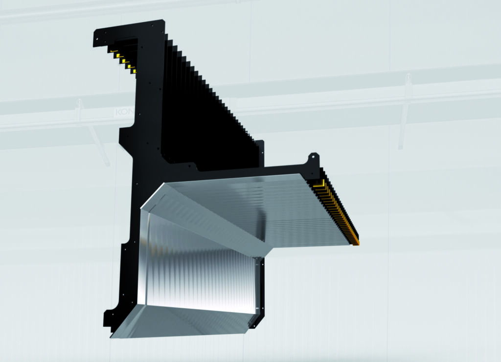 Ein typisches Beispiel ist der Griff- und Unterfahrschutz für Hubtischanwendungen, den Hema mit Elastic sicherstellen kann. Auch Dachabdeckungen wie ‚X-Velo‘ werden häufig als Schutzsystem nachgerüstet, zum Beispiel in Portalfräsmaschinen. Sie dienen als obere Schutzabdeckung des Maschinenraums, die zum Beladen oder Entnehmen des Werkzeugs geöffnet werden kann. X-Velo ist modular aufgebaut, sodass es sich flexibel anpassen lässt. Die Dachabdeckung ist mit oder ohne Motorantrieb erhältlich. Dieser ist dann auf Wunsch auch einfach in die Maschinensteuerung integrierbar.