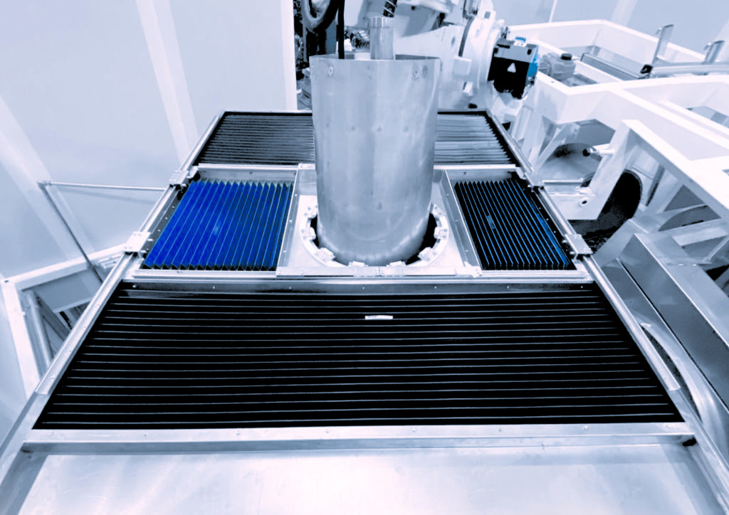 Das Unternehmen aus dem hessischen Seligenstadt produziert seit über 45 Jahren Schutzsysteme für Produktionsmaschinen. Mit Faltenbälgen zum Schutz von Führungsbahnen vor Kühlschmiermitteln, Schmutz und Staub fing 1977 alles an. Schon bald entwickelten sich daraus weitere Produkte – z.B. der Samurai-Faltenbalg, dessen Faltenoberkanten mit Edelstahl-Lamellen ausgestattet sind. Diese Verstärkung sorgt für einen wirkungsvollen Schutz vor schnellen, heißen und scharfkantigen Spänen. Samurai-Faltenbälge eignen sich aufgrund dieser Konstruktion besonders gut für Hochgeschwindigkeitsanwendungen. Sie waren deshalb auch die erste Wahl der Hema-Ingenieure für die Dachabdeckung der Omega-Anlage, da beim Hochdruckentgraten scharfkantige Kleinteile in der Maschineneinhausung umhergeschleudert werden können.