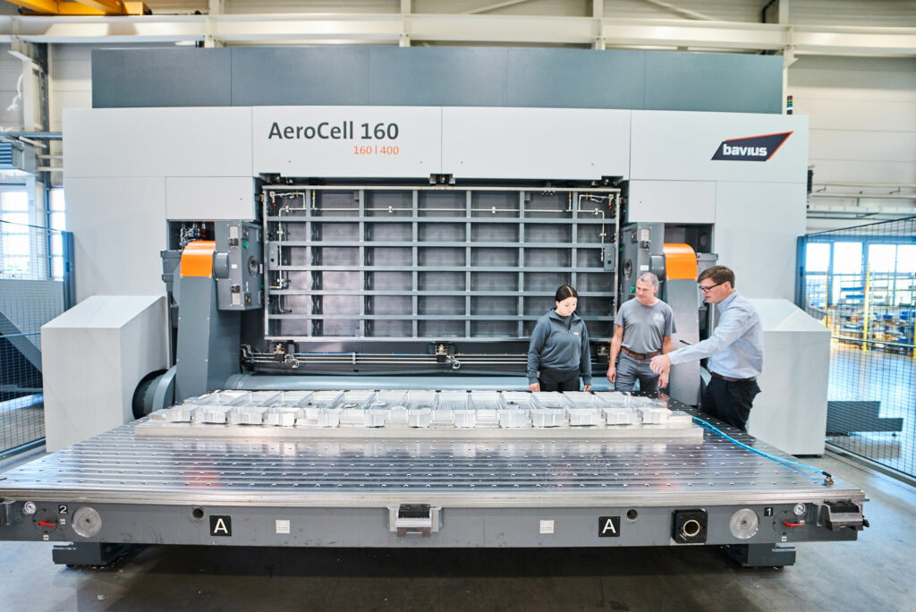 Die Anforderungen an die Sicherheit der Flugzeugfertigung sind enorm, um das Risiko von Defekten an den Teilen soweit wie möglich auszuschließen. Dies ist auch der Grund für die hohen Zerspanungsanteile der in Flugzeugen verbauten Strukturteile. Da es sich vielfach um große Bauteile handelt, sind die Fräszeiten vergleichsweise lang. Deshalb wurde die aktuelle Bavius-Maschine AeroCell 160 für möglichst hohe Produktivität ausgelegt. Sie eignet sich insbesondere für Anwender, die Bauteile mit Abmessungen bis zu 4.000x1.600mm und maximal 800mm Höhe bearbeiten wollen.