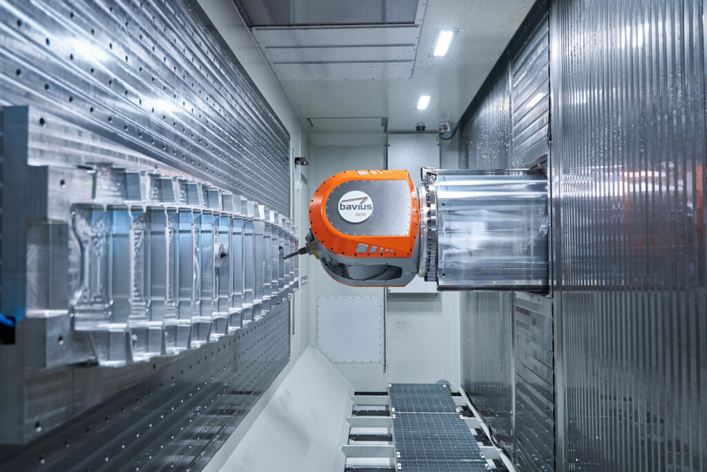 „Um bei der Zerspanung Höchstleistungen bieten zu können, haben wir die Technologie unserer Gabel-Fräsköpfe selbst entwickelt“, erläutert Werner Zell von der Abteilung Mechanische Konstruktion. In der AeroCell 160 arbeitet im Bavius Fräskopf bmh3 die grundlegend optimierte und leistungsgesteigerte neue Hochleistungsspindel der Firma Fischer (bis zu 30.000 Umdrehungen pro Minute, Leistung: maximal 140kW). Sie gestattet im S6-Betrieb Zerspanungsraten bis zu 20,6 und im S1-Betrieb bis zu 16,7 Liter Späne pro Minute.